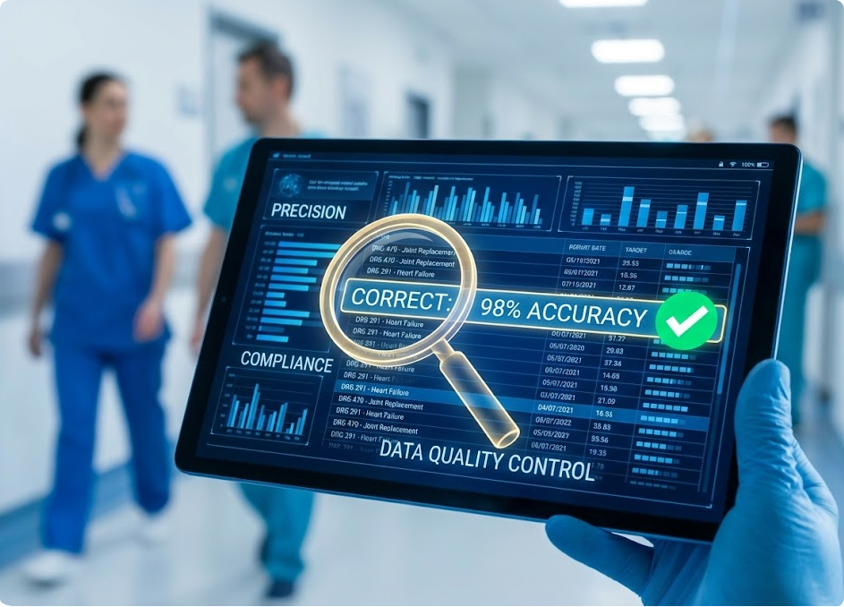 - 新常态解读: “即时结算”对数据质量有着极高的要求。一次病案首页的编码错误,就会导致秒级结算失败,甚至引发全院级的资金卡顿。 因此,管理体系必须升级为“无合规,不绩效”。我们建议将病案首页质量(HQMS)与医保结算清单准确率作为绩效分配的“前置门槛”。通过高权重的质控指标,倒逼临床提升数据素养——这不仅是为了拿奖金,更是为了保障医院现金流的安全阀。