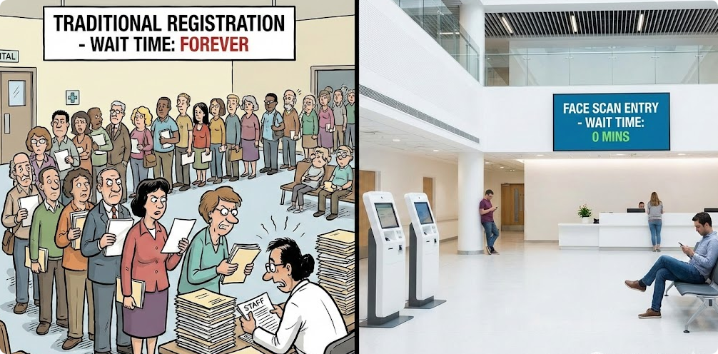 现在的技术早就支持“诊间支付”了——医生开完单,患者在诊室门口或者手机上“刷脸”秒付,直接去药房。