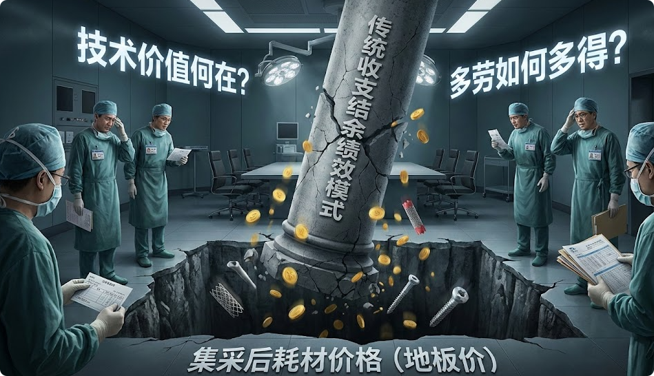- 激励失效: 如果继续沿用旧的核算方式,医生的技术劳务价值被耗材降价“稀释”,出现“做得越多,奖金越少”的倒挂现象。