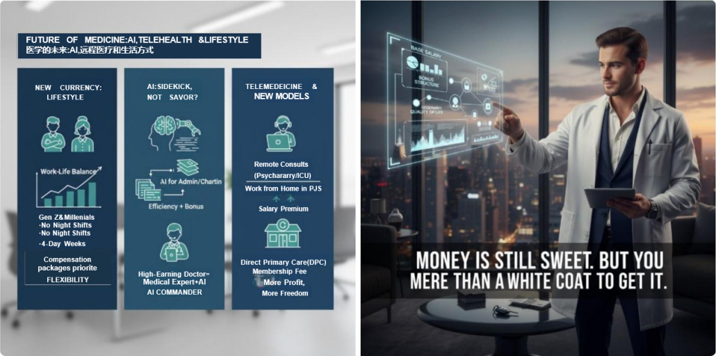 年轻一代(Gen Z)医生在美国已经开始“反向操作”:他们宁愿少拿薪水,也要换取不值夜班的权利;他们利用远程医疗“摸鱼”,逃避临床的高压。而在中国,年轻医生“躺平”的声音也日渐高涨。这说明,旧的管理范式失效了。
