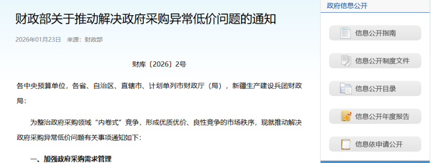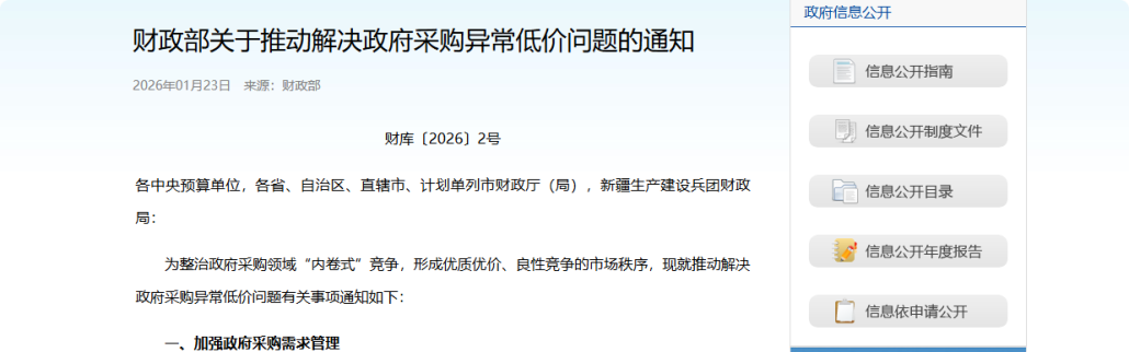 近日,财政部拟施行的《关于推动解决政府采购异常低价问题的通知》(以下简称《通知》),犹如一记重锤,精准砸向了这一行业顽疾。