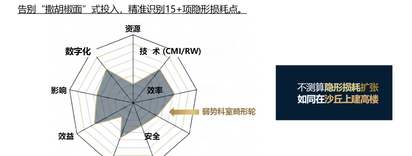 识别15+项核心管理砂眼;出具提升CMI与国考排名的切实路径图。 |