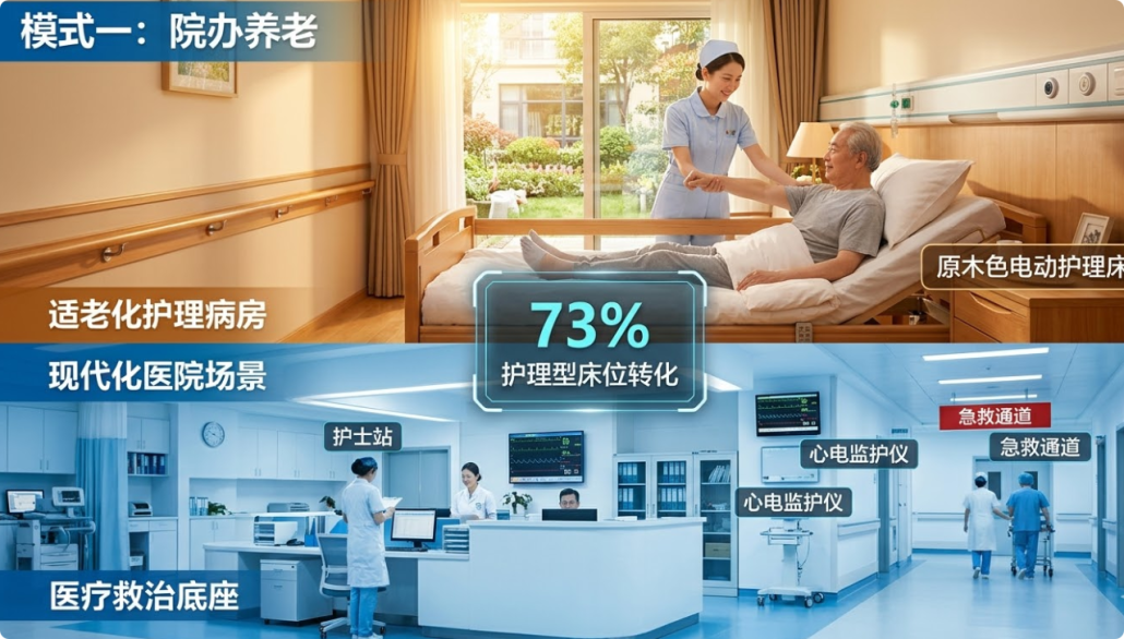 模式一:向下兼容的院办养老(盘活存量医疗资产)
