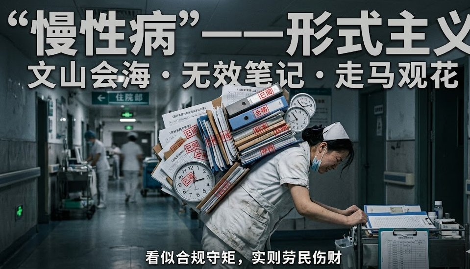 - “文山会海”与无效笔记:频繁召开与临床脱节的务虚会,强制上交千篇一律的学习笔记,用“痕迹管理”掩盖管理效能的低下。