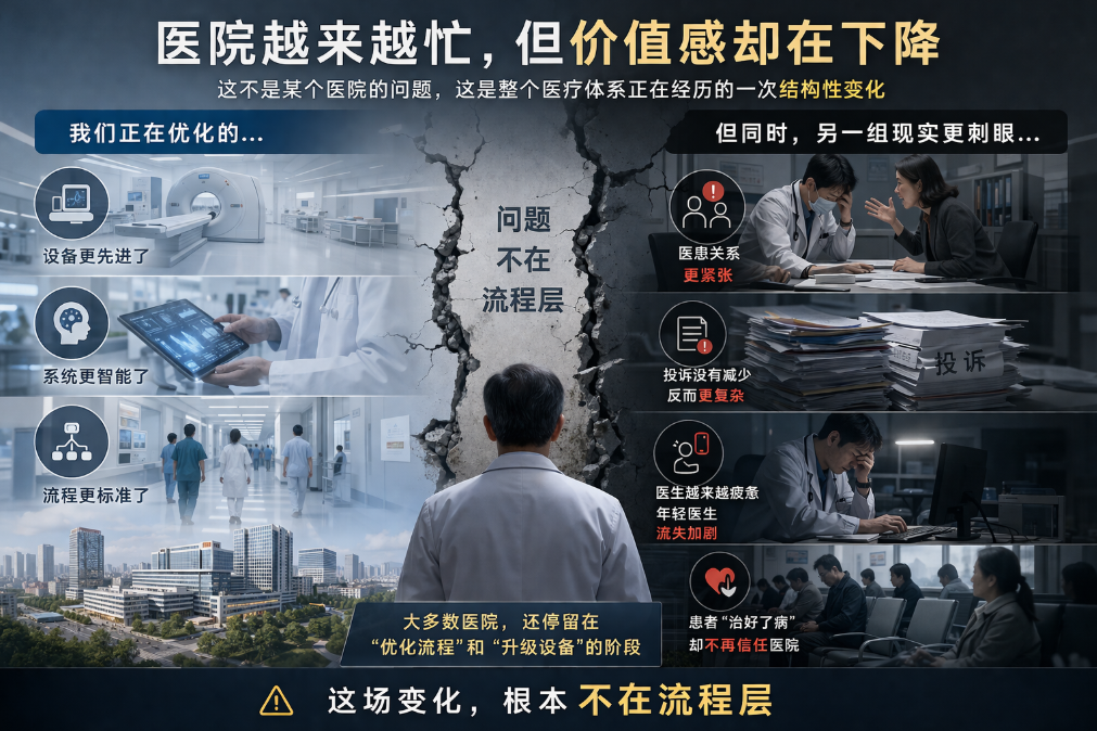 这不是某个医院的问题。这是整个医疗体系正在经历的一次结构性变化。而大多数医院,还停留在“优化流程”和“升级设备”的阶段。问题是:这场变化,根本不在流程层。